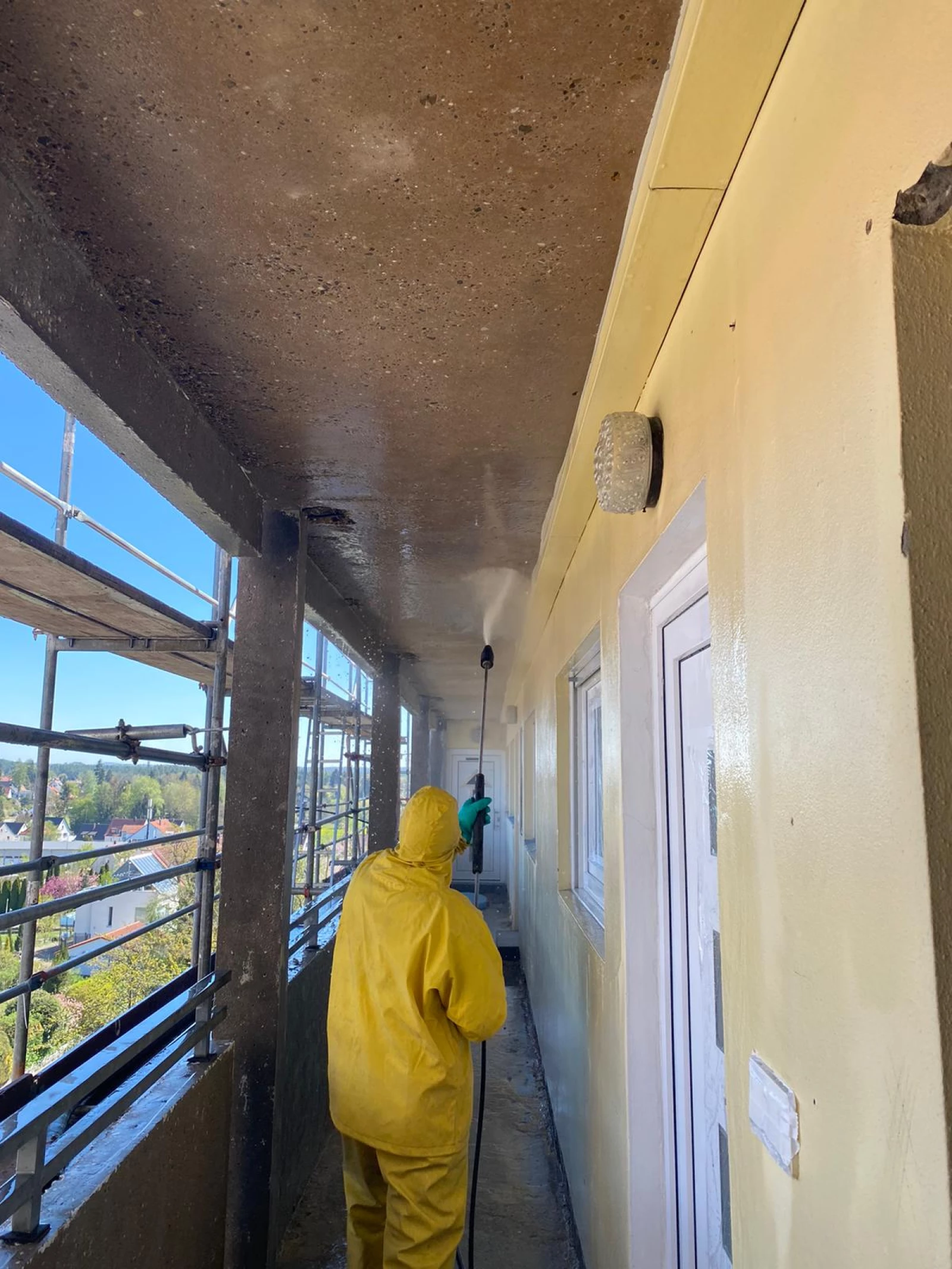 - Betoninstandsetzung an den Brüstungen und den Deckenuntersichten